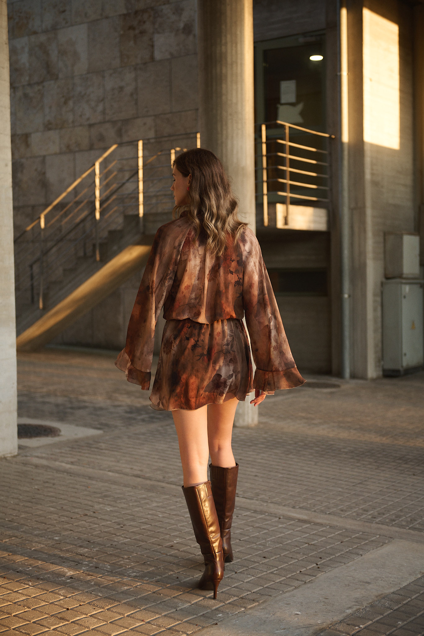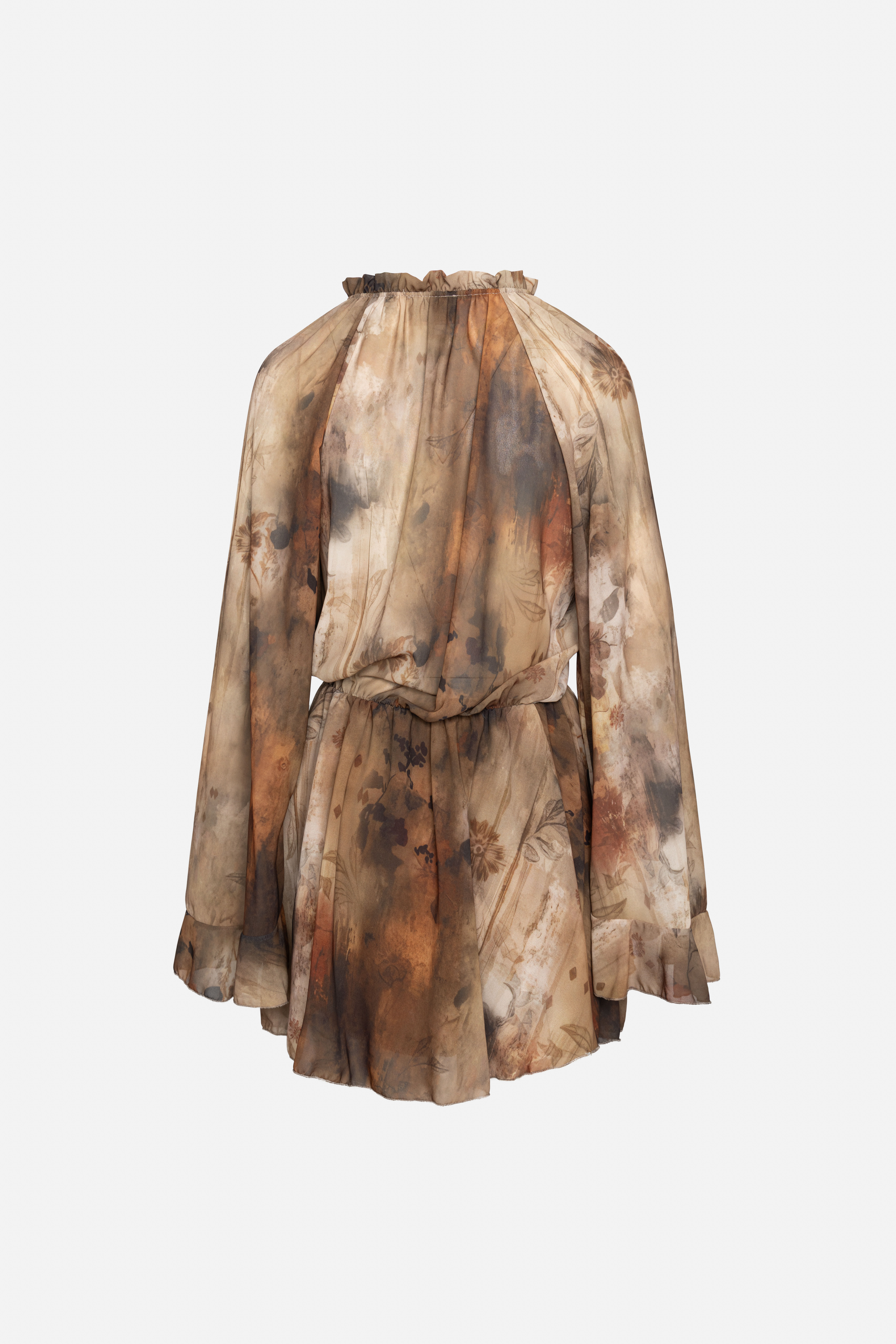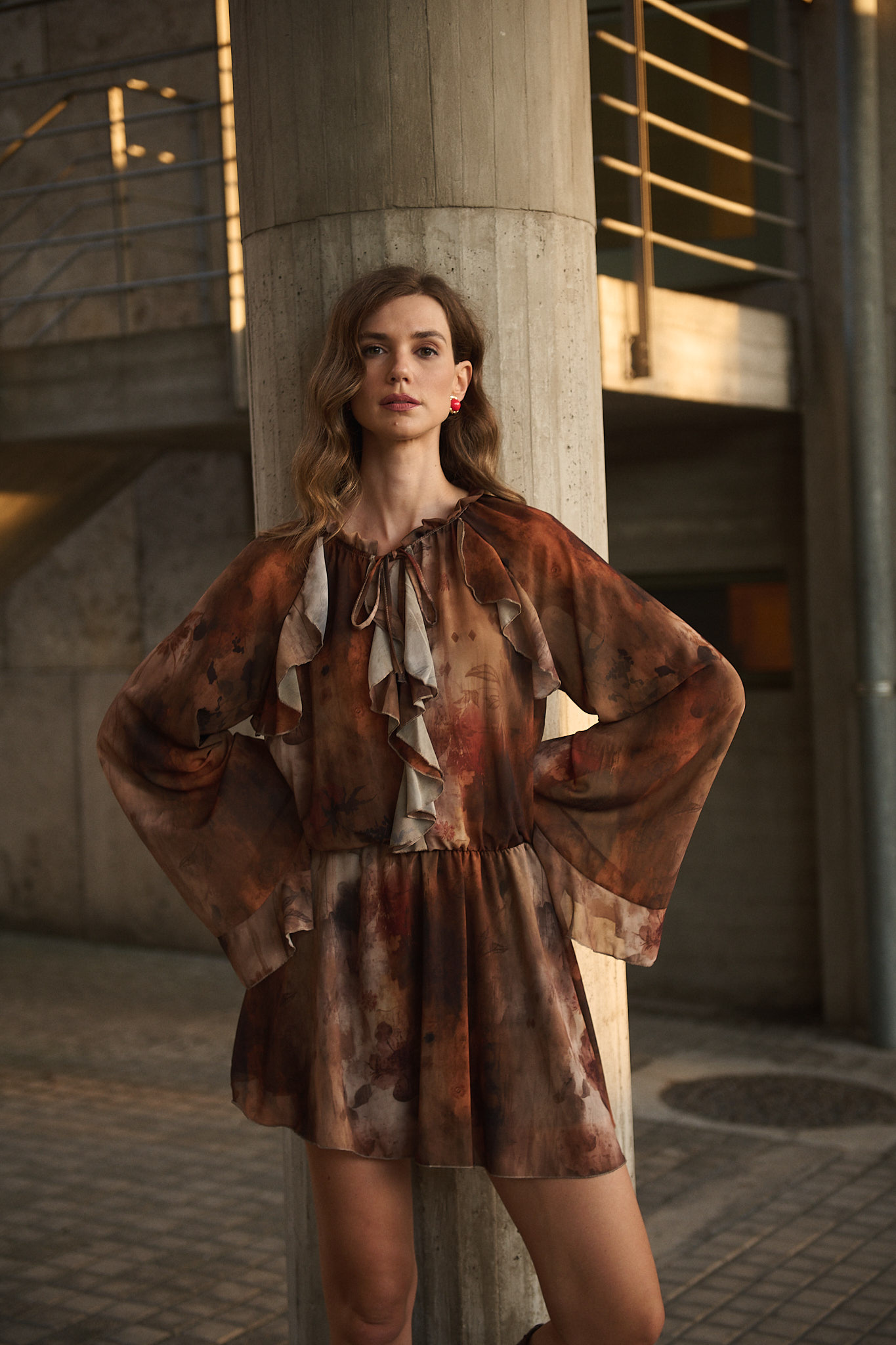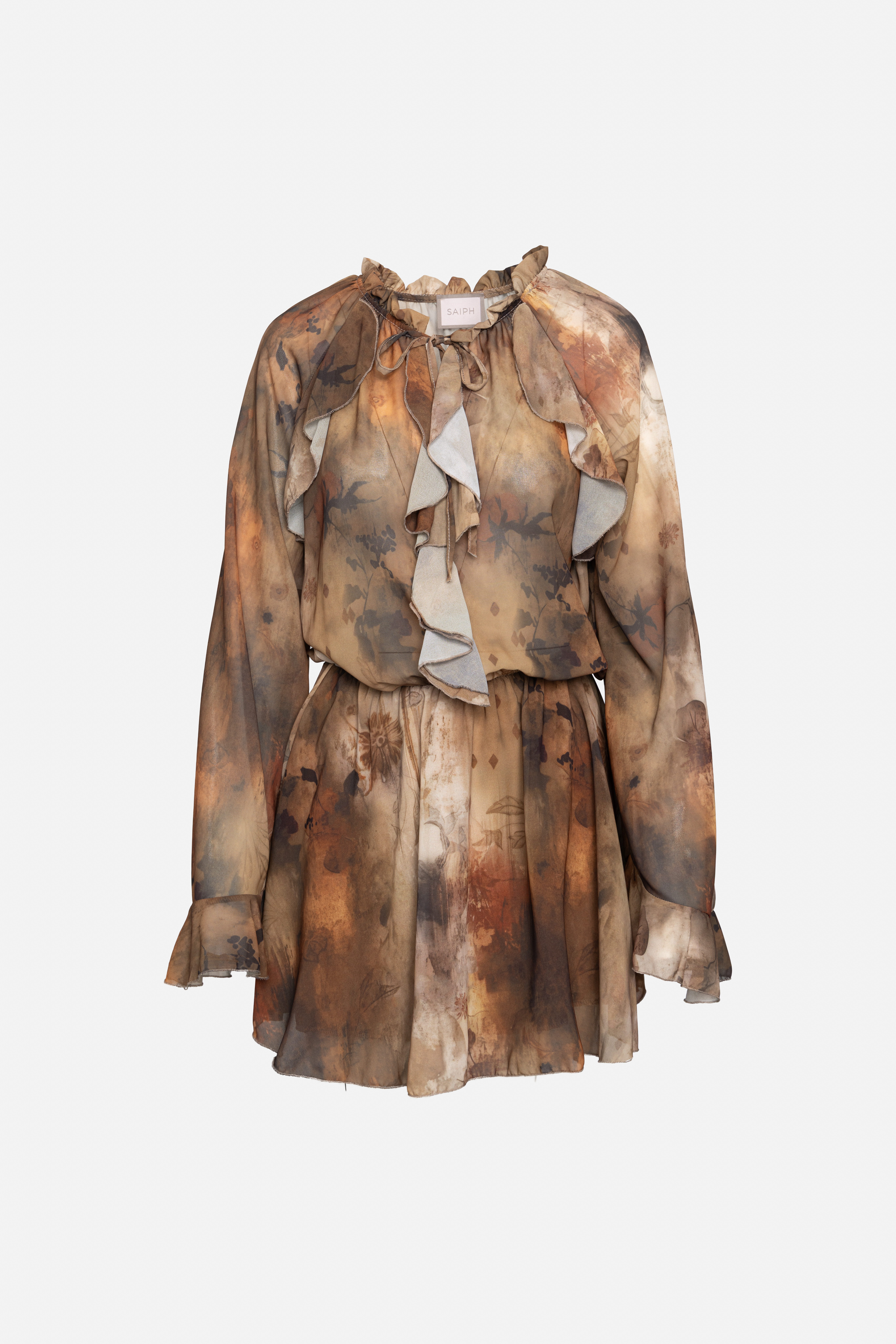 Φόρεμα Mini σε Γήινο Εμπριμέ με Βολάν “Autumn Lily”