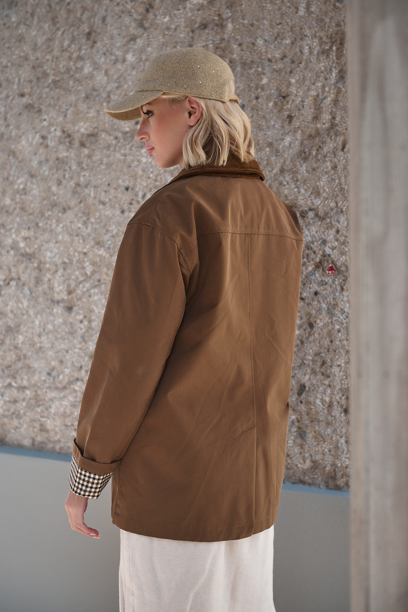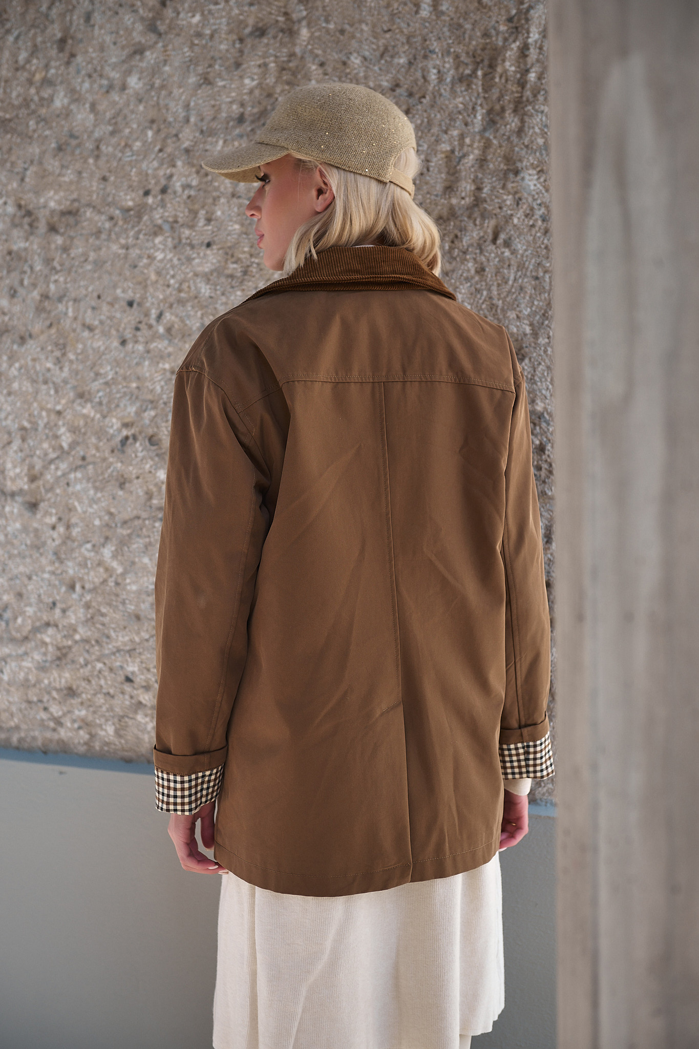 Καμπαρντίνα Καμηλό Με Καρό Λεπτομέρειες “Wren”