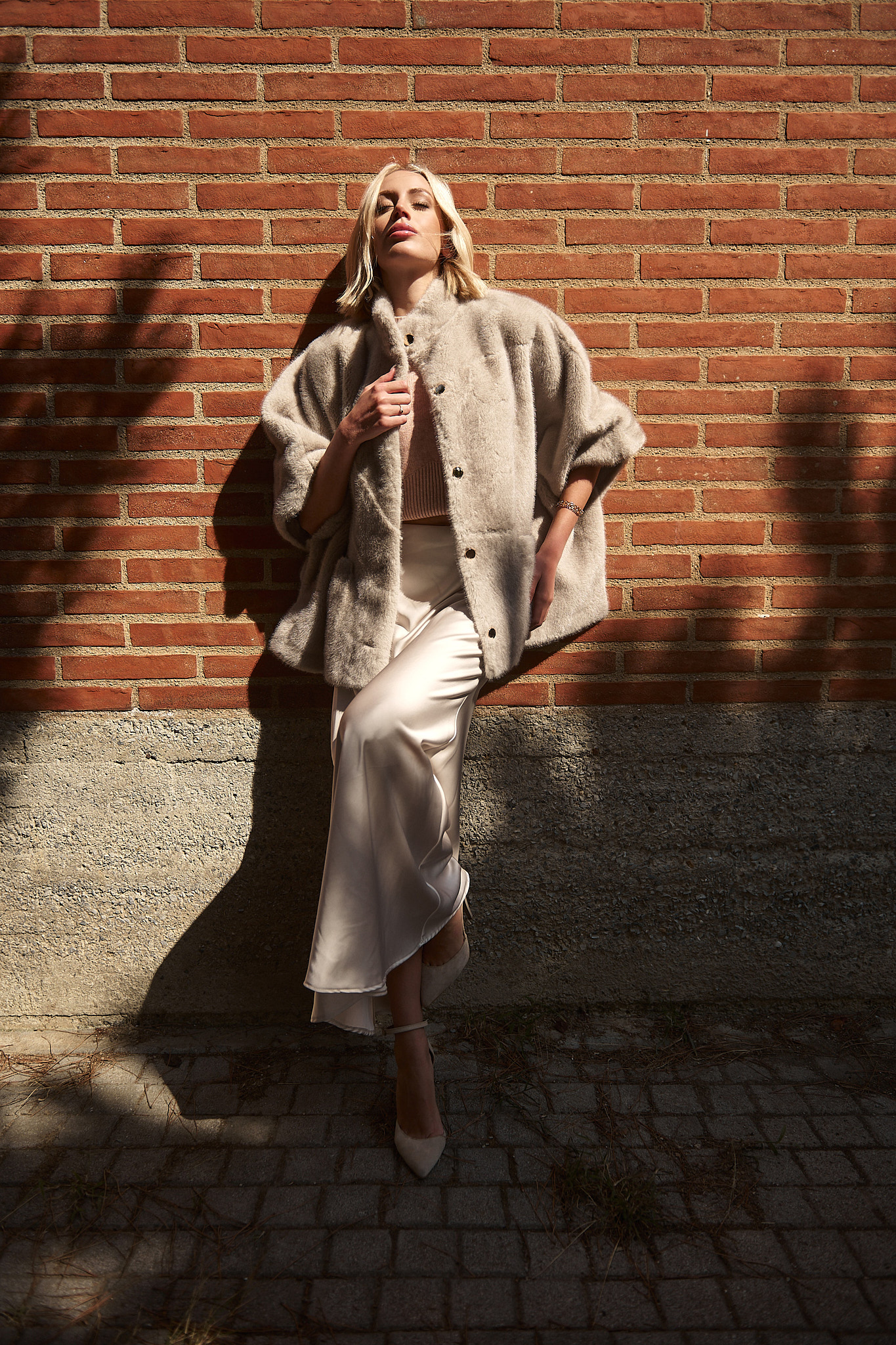 Απαλή σαν χάδι και τόσο κομψή όσο ο χειμώνας στις πιο ήρεμες αποχρώσεις του, η κάπα “Dove” συνδυάζει τη θηλυκή πολυτέλεια με τη διαχρονική άνεση. Η πυκνή faux γούνα της σε μπεζ τόνους αγκαλιάζει το σώμα με ζεστασιά, ενώ η loose γραμμή της χαρίζει αέρινη κίνηση και chic απλότητα. Ένα ρούχο που αποπνέει σιωπηλή δύναμη, ιδανικό για τα ψυχρά πρωινά και τις λαμπερές βραδιές.