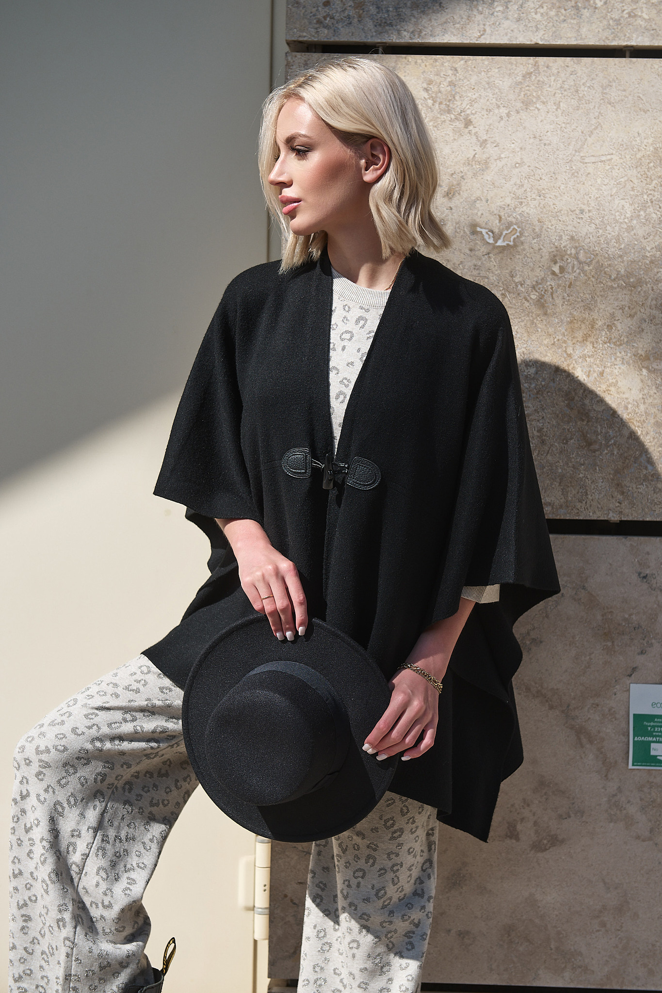 Φόρεσέ το με total black look, όπως στη φωτογραφία, για ένα μίνιμαλ αλλά δυναμικό αποτέλεσμα. Εναλλακτικά, συνδύασέ το με μακρύ παλτό καραμέλας και suede μποτάκια για boho city vibes ή με maxi φόρεμα και γούνα για μια πιο cinematic, βραδινή εμφάνιση.