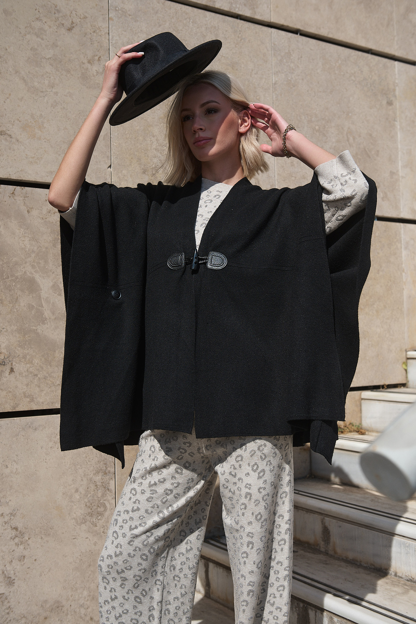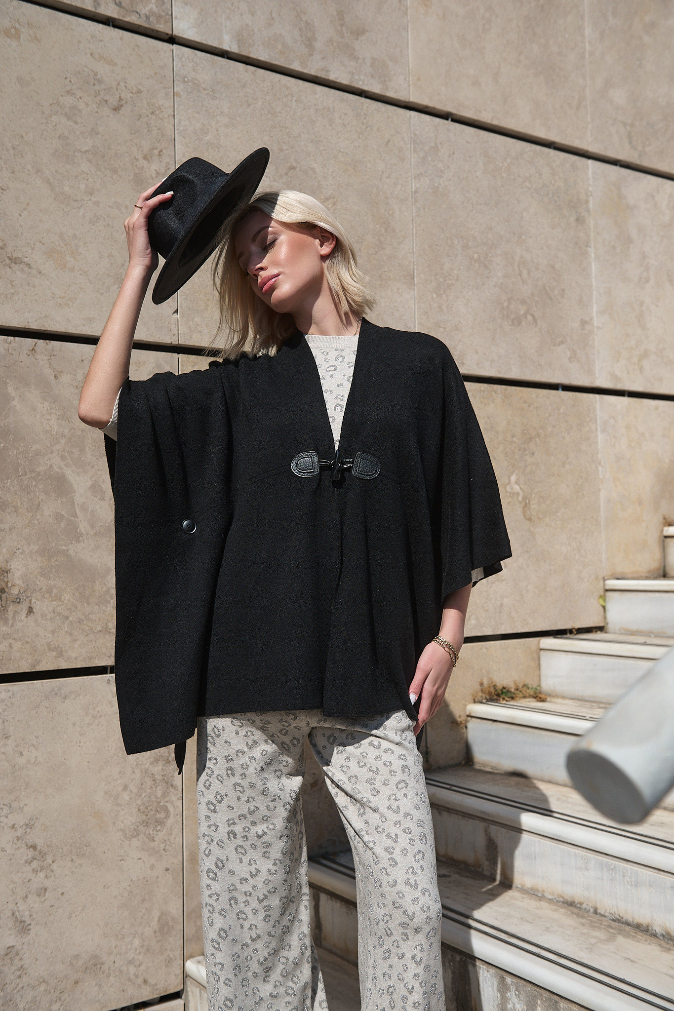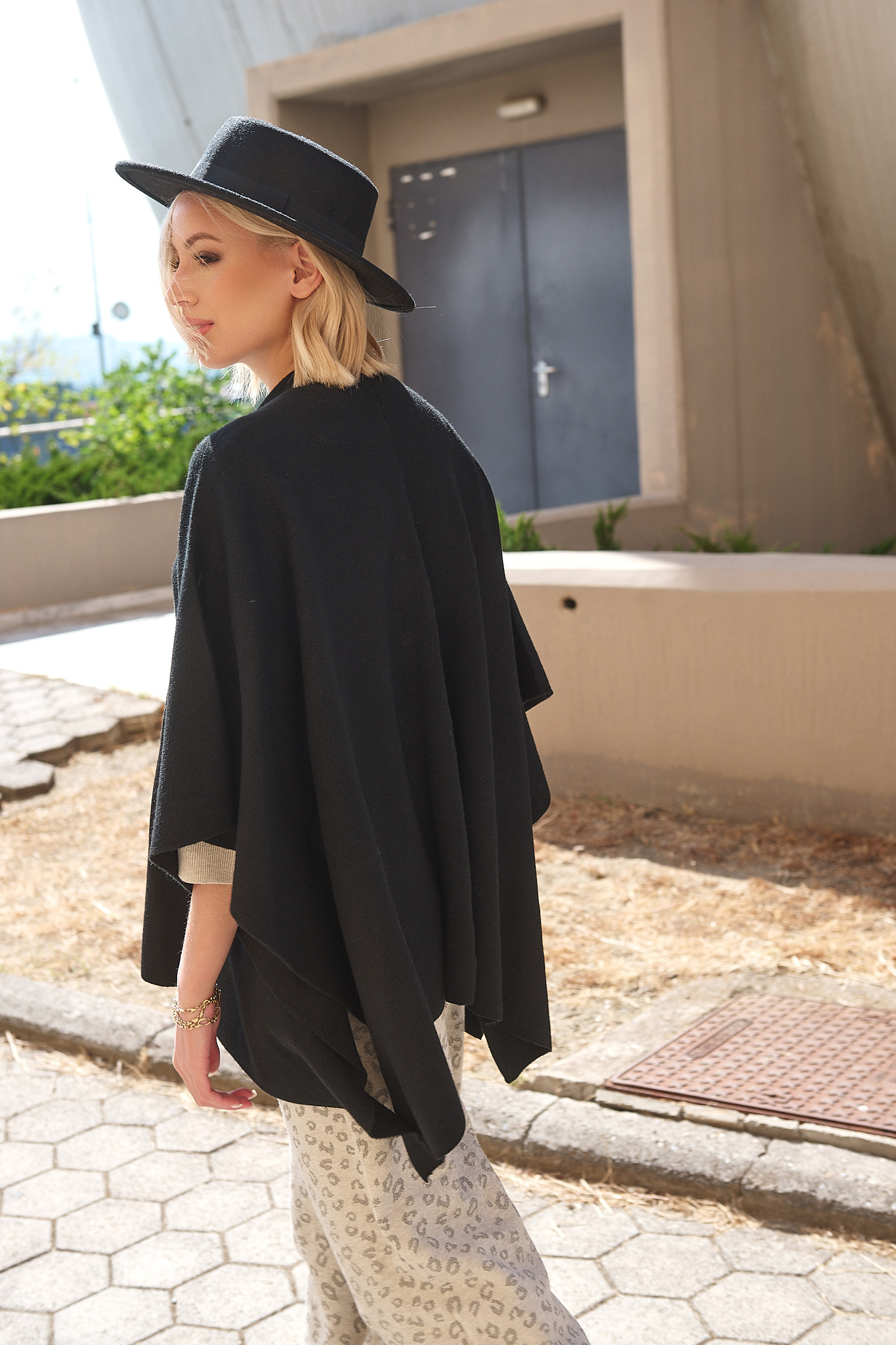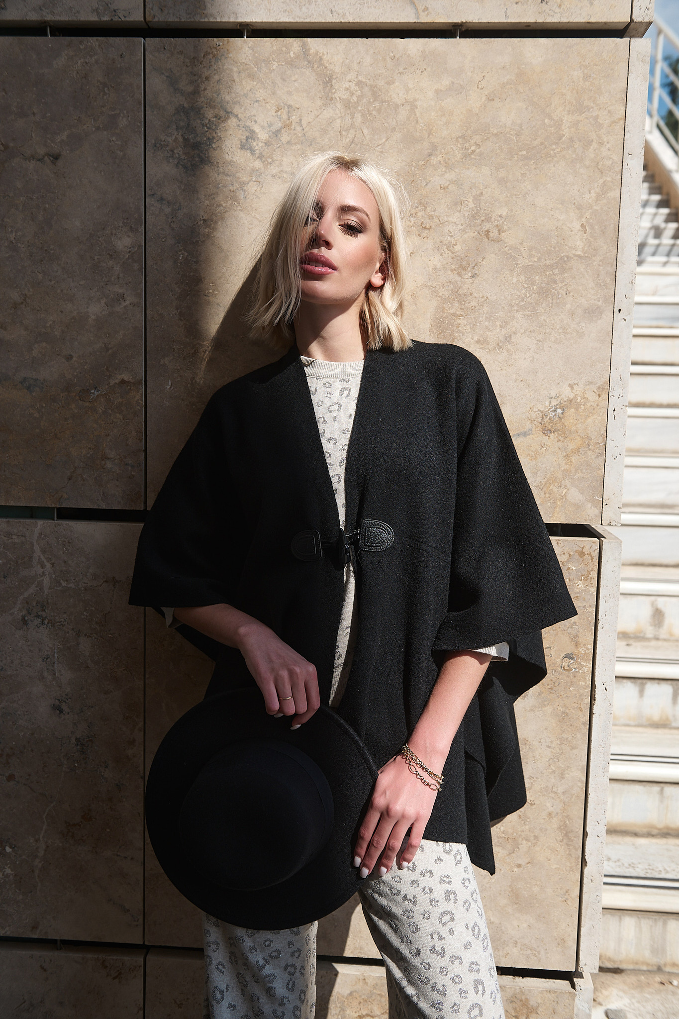 Απλότητα, δύναμη και ανεπιτήδευτη φινέτσα. Η “Noir” είναι η κάπα που αποπνέει αστική κομψότητα με minimal γραμμή και διαχρονικό ύφος. Το πλεκτό της ύφασμα προσφέρει αίσθηση θαλπωρής, ενώ το διακριτικό κούμπωμα μπροστά και η ρέουσα σιλουέτα της την καθιστούν ιδανική για μοντέρνα layering looks.