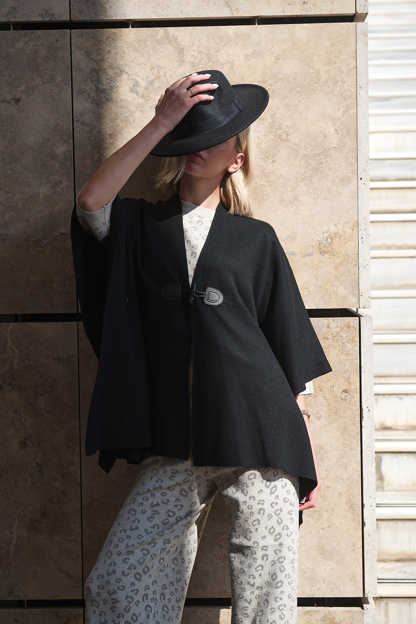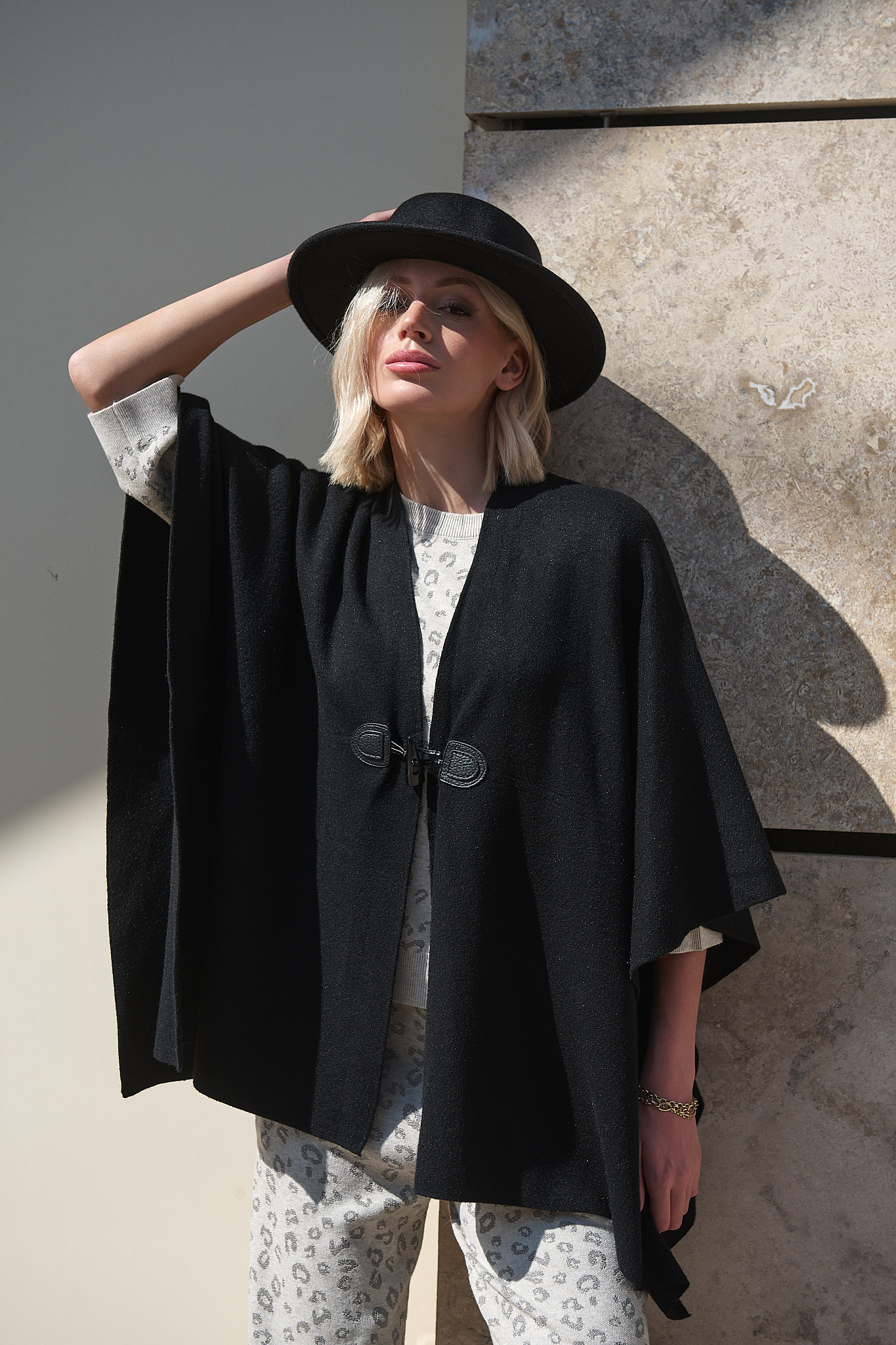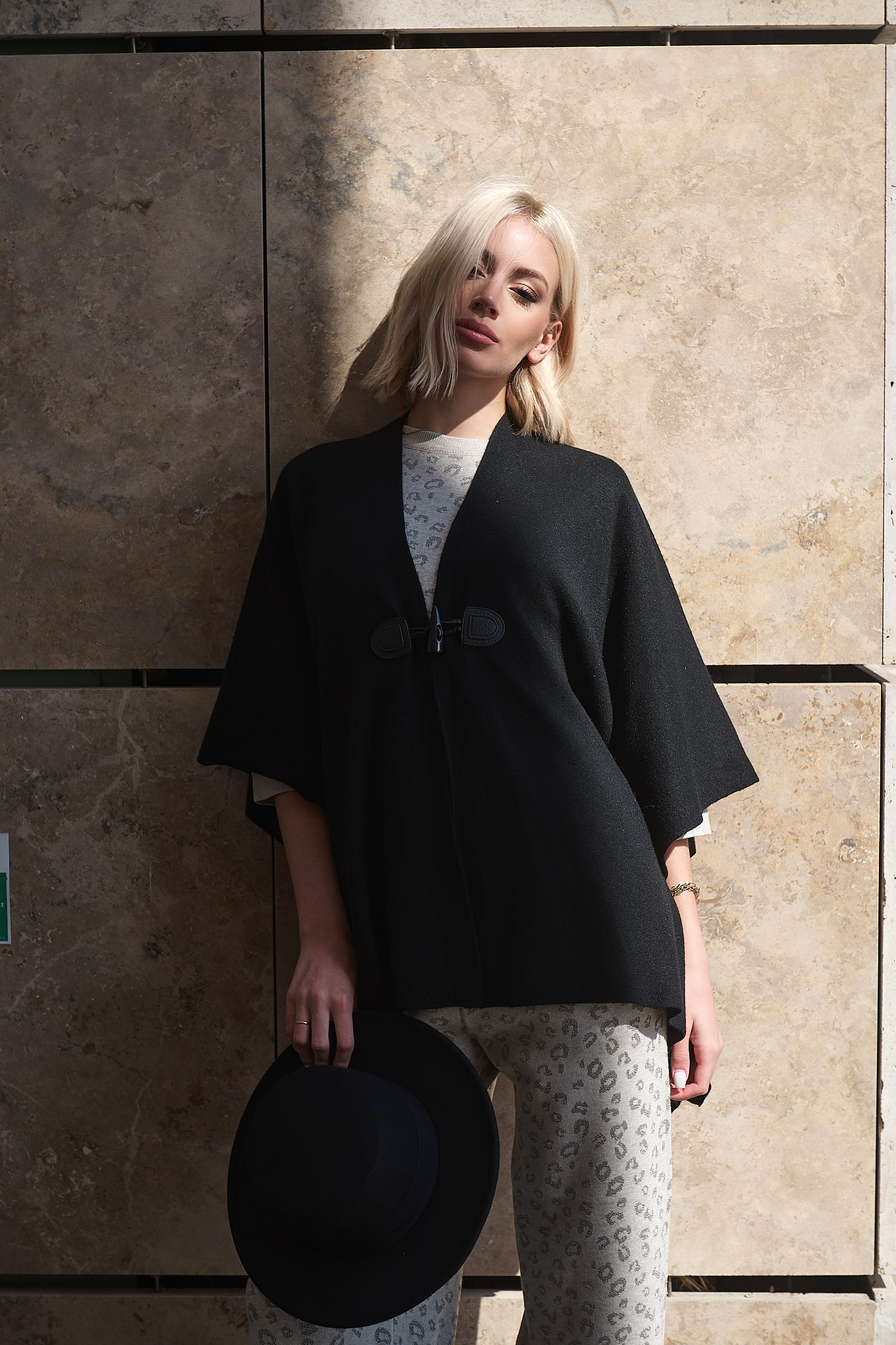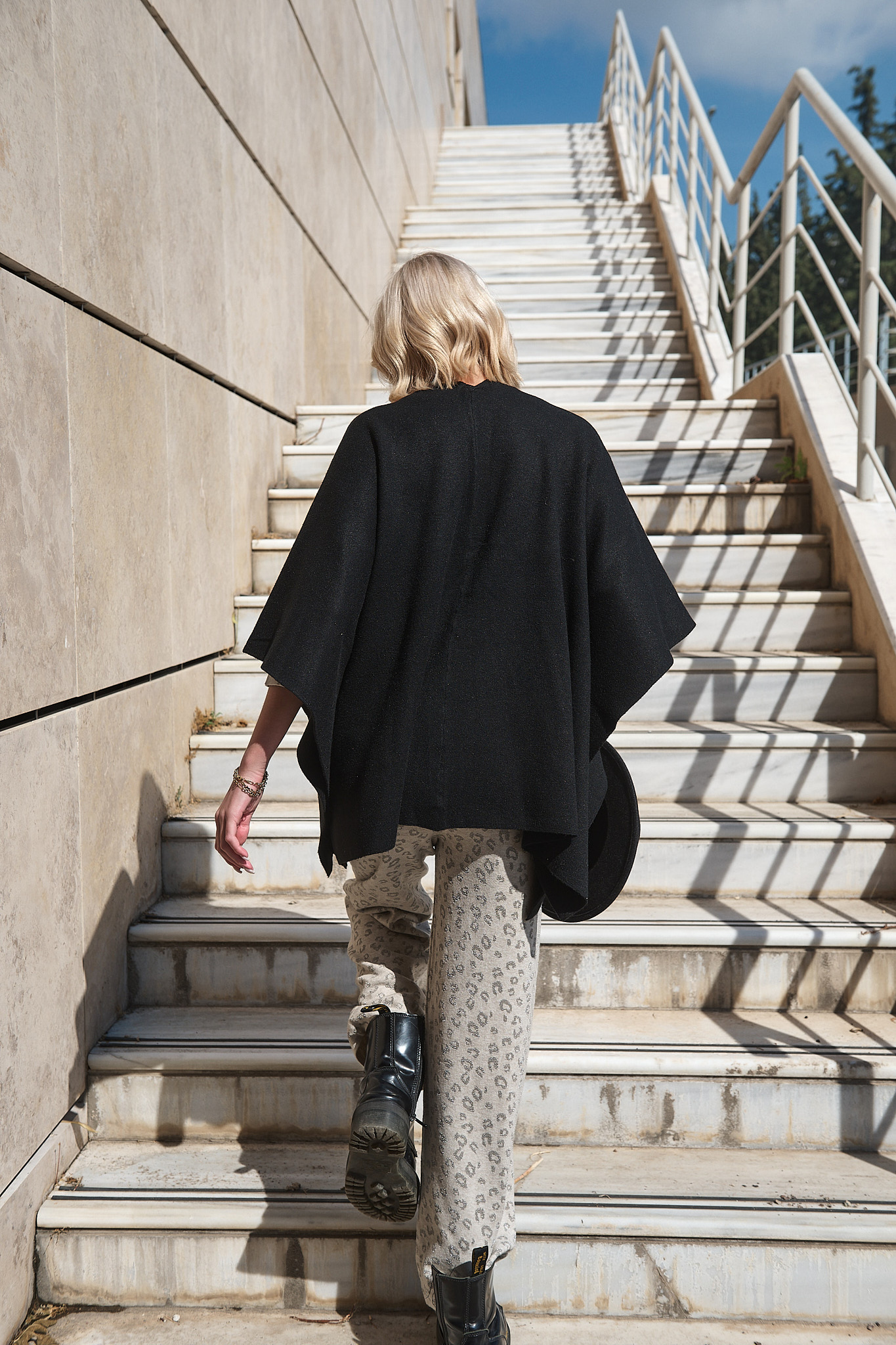 Απλότητα, δύναμη και ανεπιτήδευτη φινέτσα. Η “Noir” είναι η κάπα που αποπνέει αστική κομψότητα με minimal γραμμή και διαχρονικό ύφος. Το πλεκτό της ύφασμα προσφέρει αίσθηση θαλπωρής, ενώ το διακριτικό κούμπωμα μπροστά και η ρέουσα σιλουέτα της την καθιστούν ιδανική για μοντέρνα layering looks.
