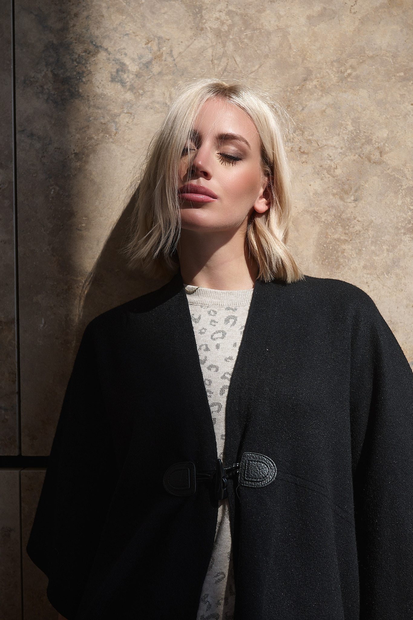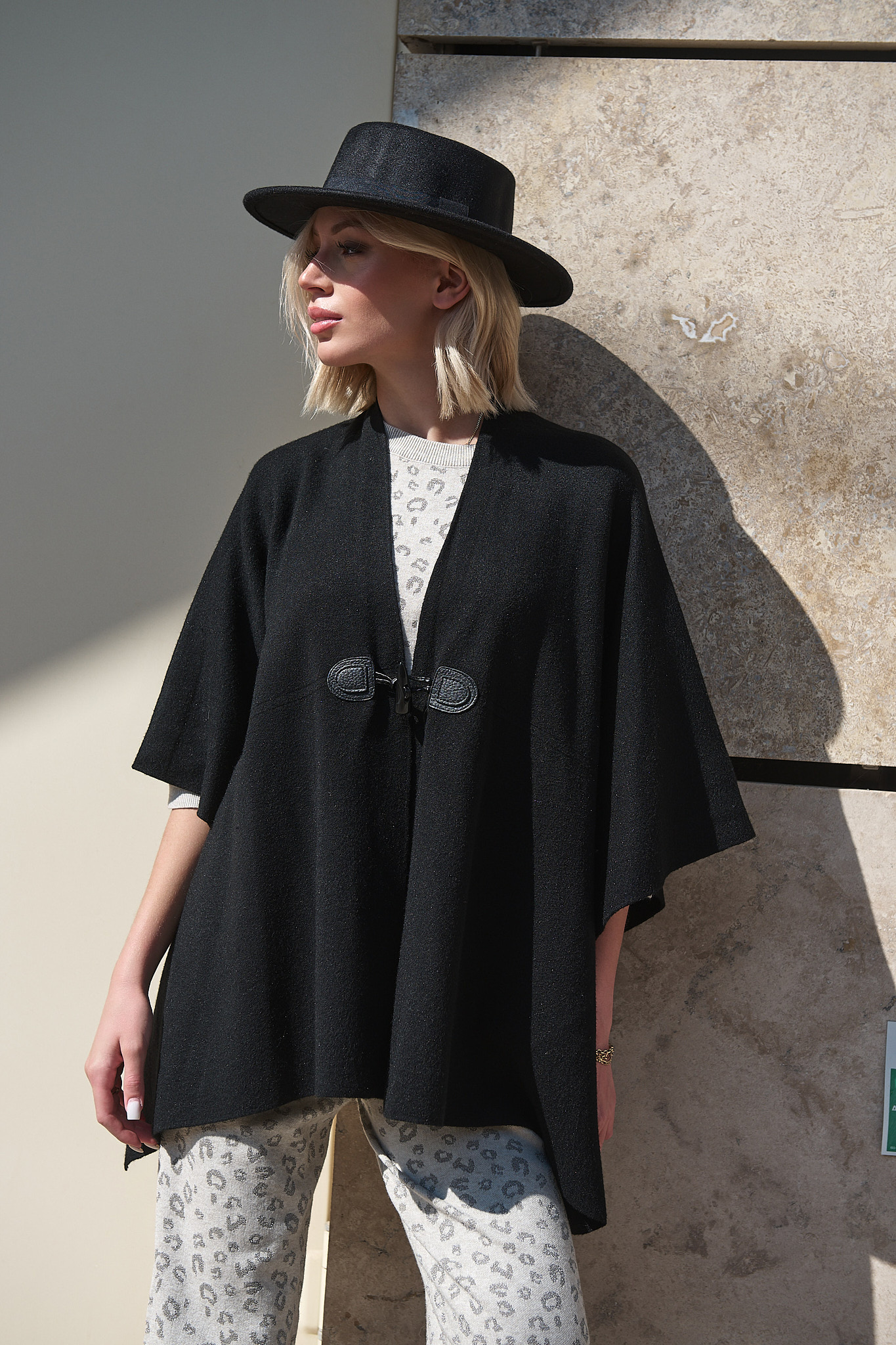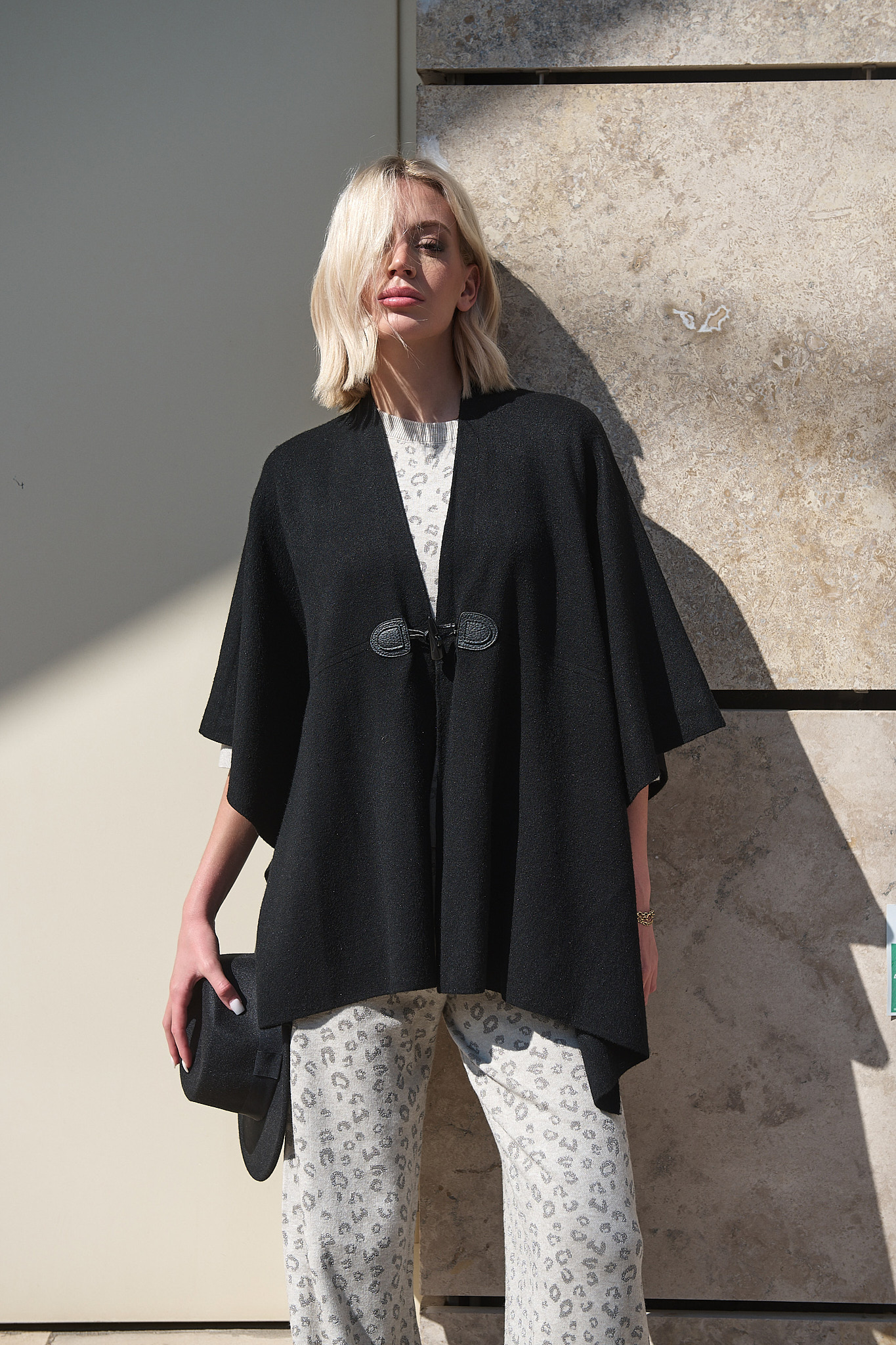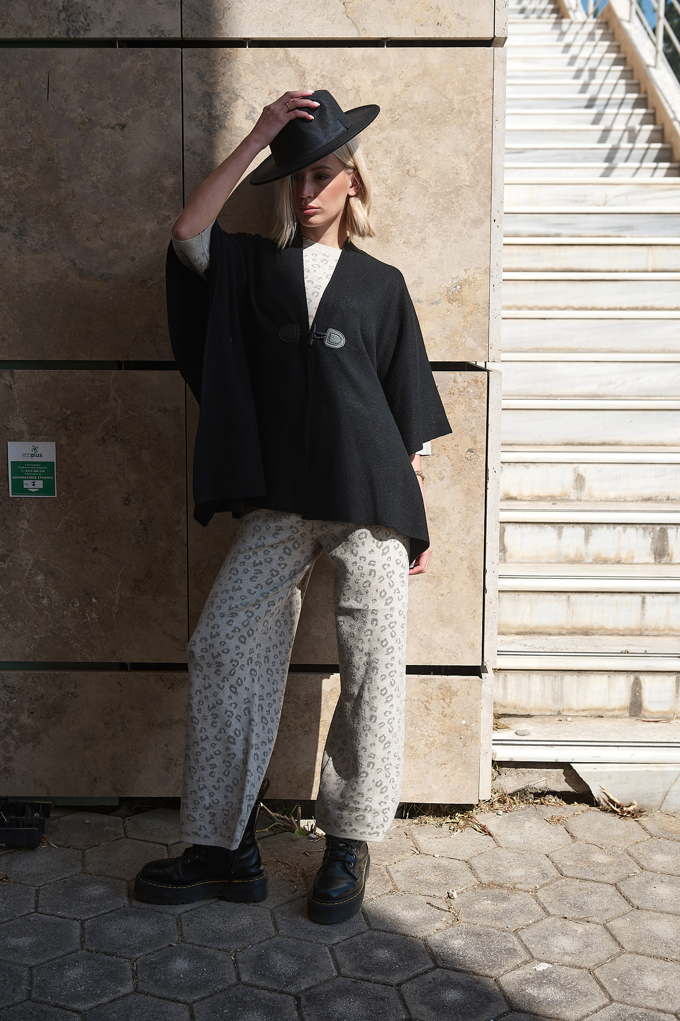 Απλότητα, δύναμη και ανεπιτήδευτη φινέτσα. Η “Noir” είναι η κάπα που αποπνέει αστική κομψότητα με minimal γραμμή και διαχρονικό ύφος. Το πλεκτό της ύφασμα προσφέρει αίσθηση θαλπωρής, ενώ το διακριτικό κούμπωμα μπροστά και η ρέουσα σιλουέτα της την καθιστούν ιδανική για μοντέρνα layering looks.
