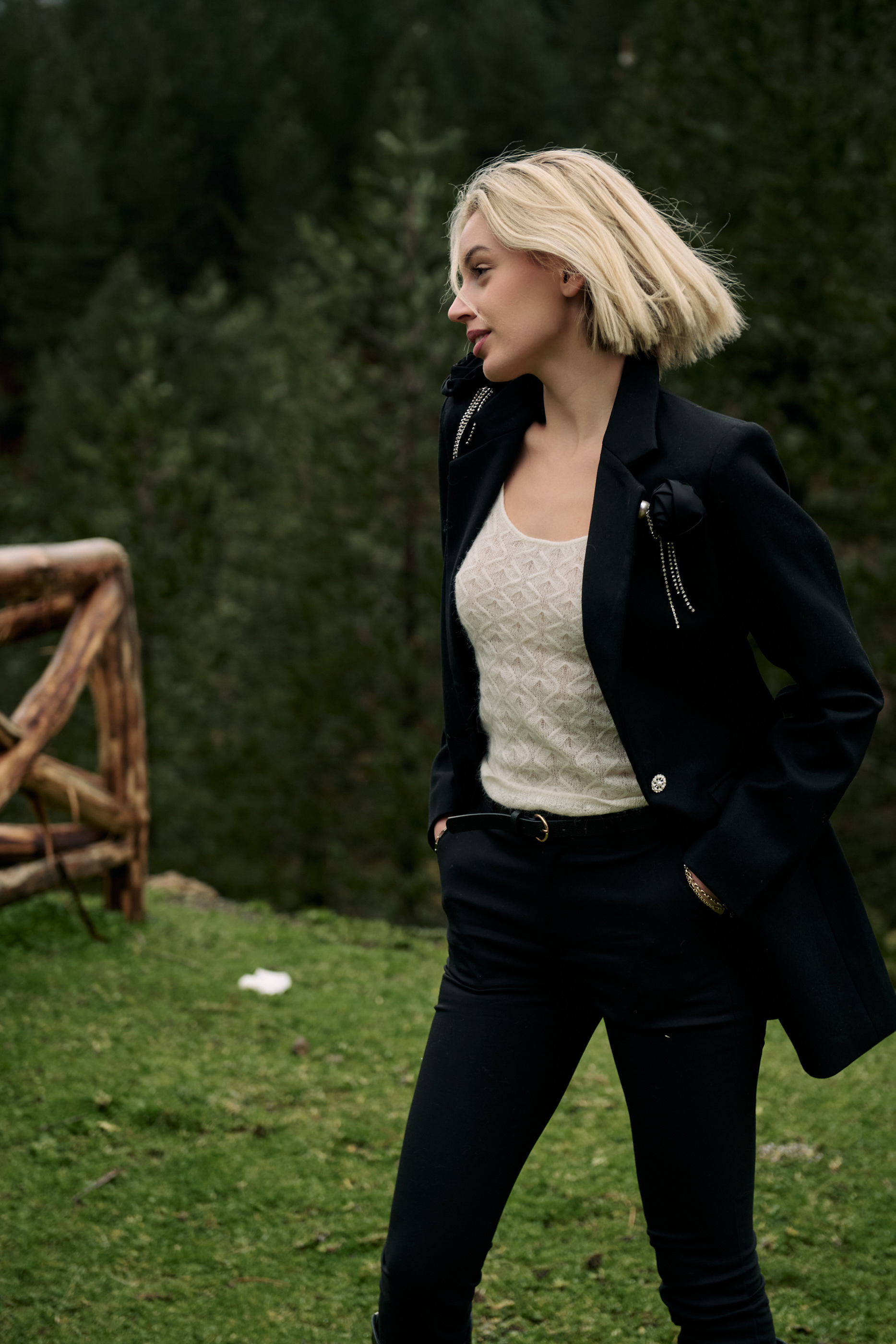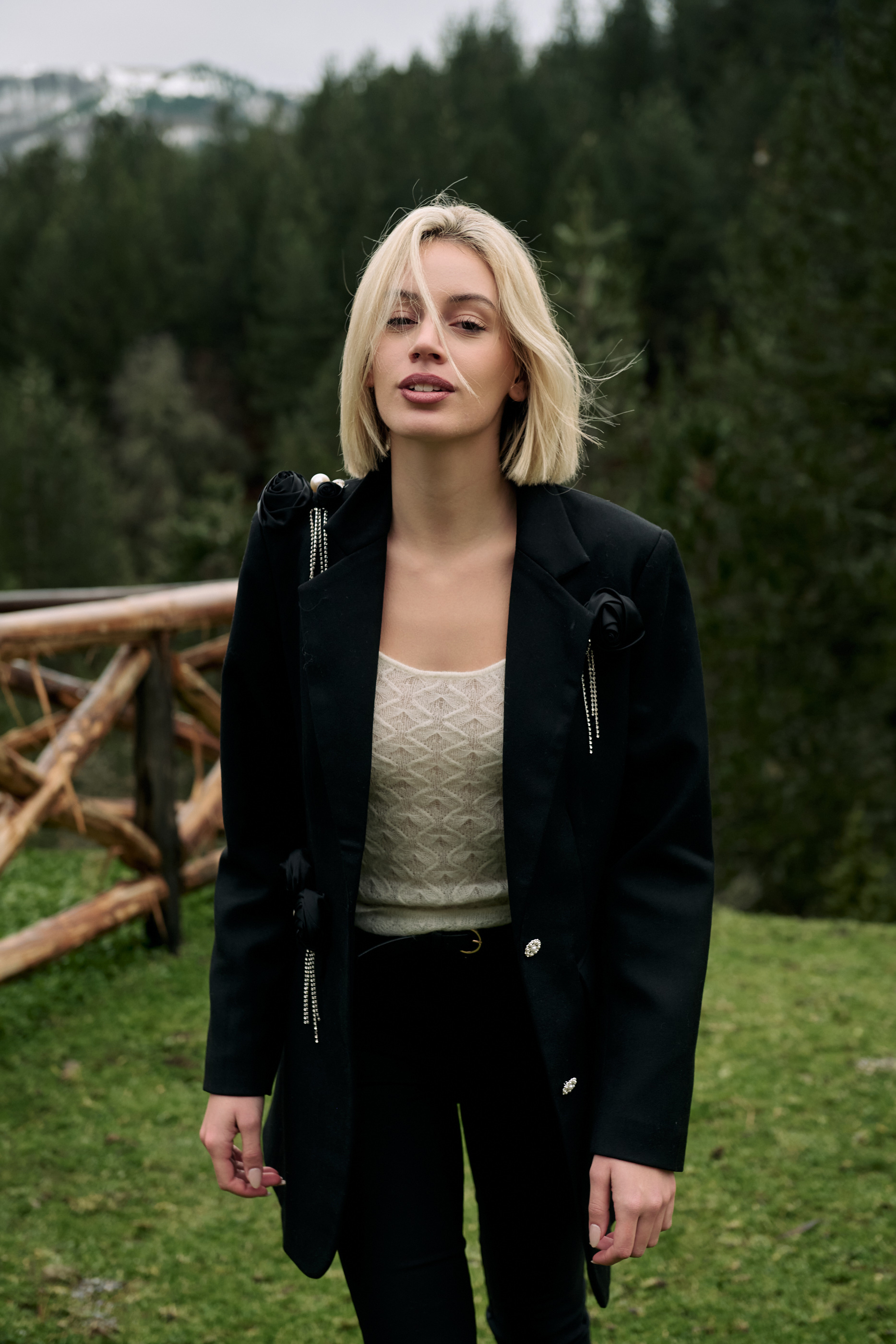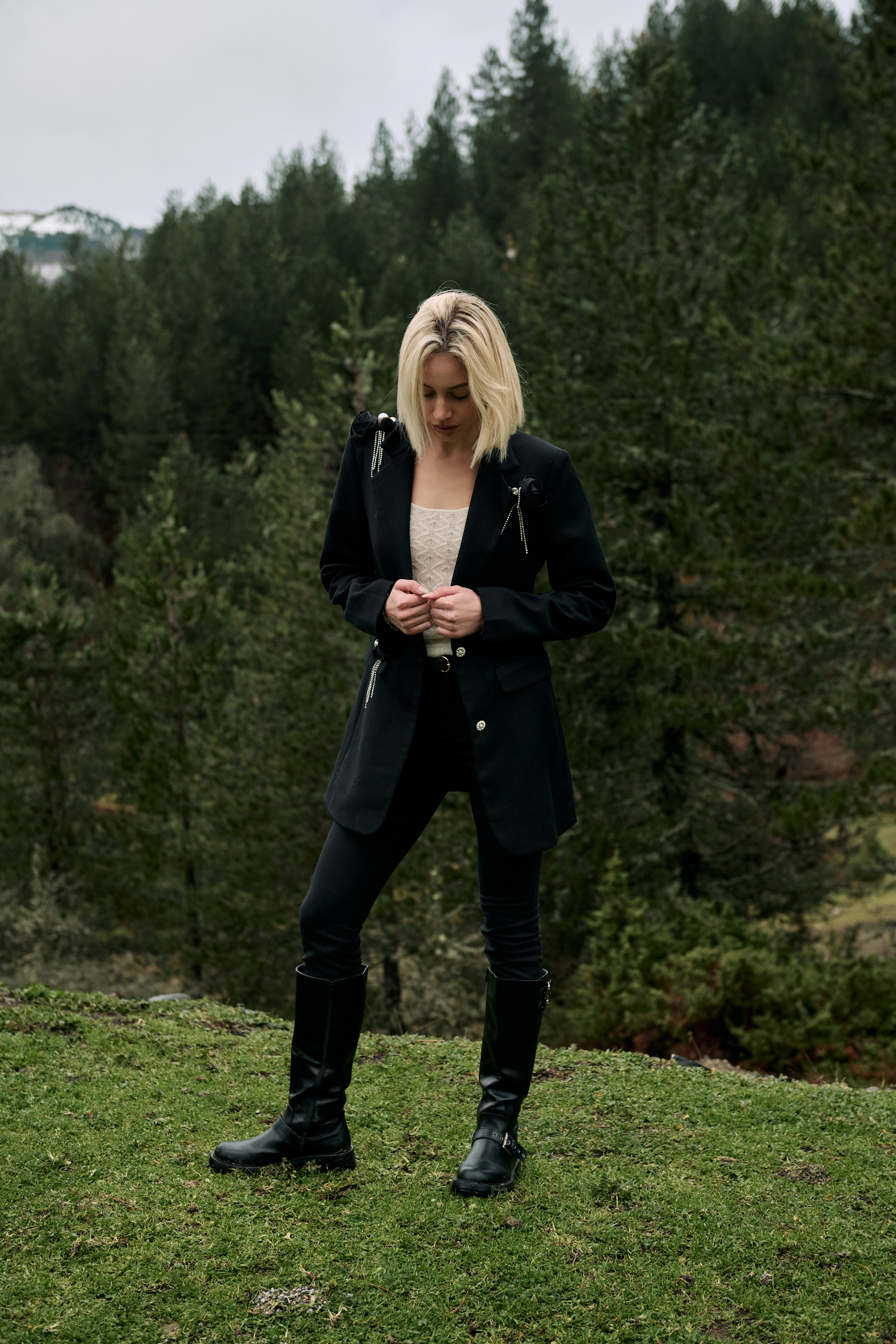 Για εσένα που θες να ξεχωρίζεις με θηλυκότητα και λεπτομέρεια! Το σακάκι “Rosella” συνδυάζει ανάλαφρη υφή με κεντημένα τριαντάφυλλα, στρας και πέρλες, διακοσμητικά στοιχεία που του δίνουν ρομαντικό χαρακτήρα. Μεσάτο κόψιμο, λεπτές βάτες και εσωτερική φόδρα για άνεση, κλείσιμο με κουμπί και διακοσμητικά στοιχεία στα μανίκια για επιπλέον στυλ.